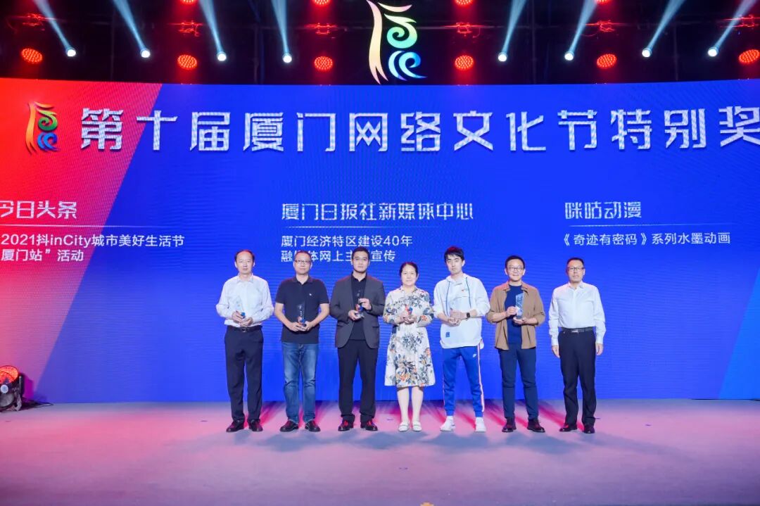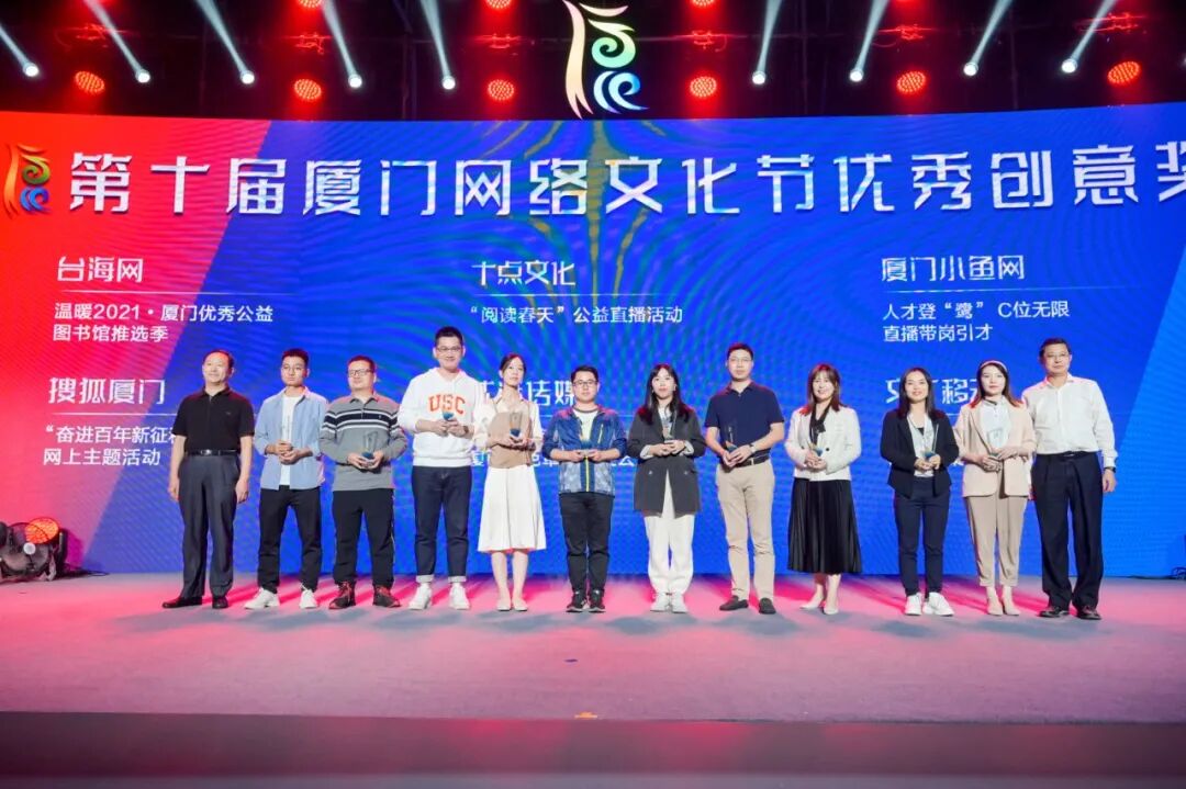 现场颁发了第十届厦门网络文化节优秀传播奖、优秀创意奖、优秀网民奖、优秀组织奖。本届厦门网络文化节还专门设立特别奖,表彰在网络传播、创新创意、组织发动等方面成绩特别突出的活动项目。
