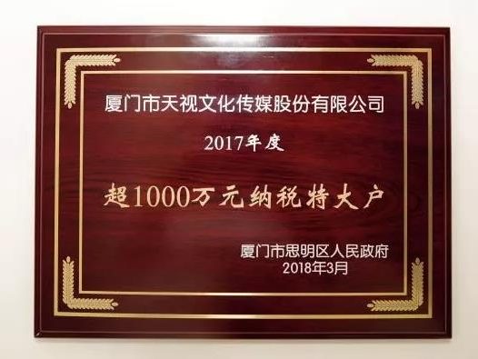 【喜讯】华侨城天视文化获厦门市思明区“超1000万元纳税特大户”!