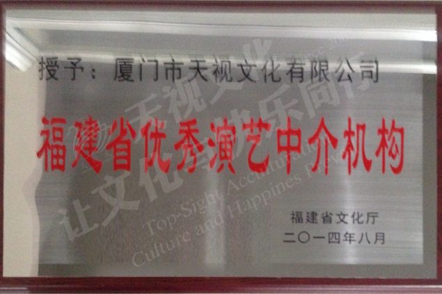 天视文化荣获“福建省优秀演艺中介机构”表彰